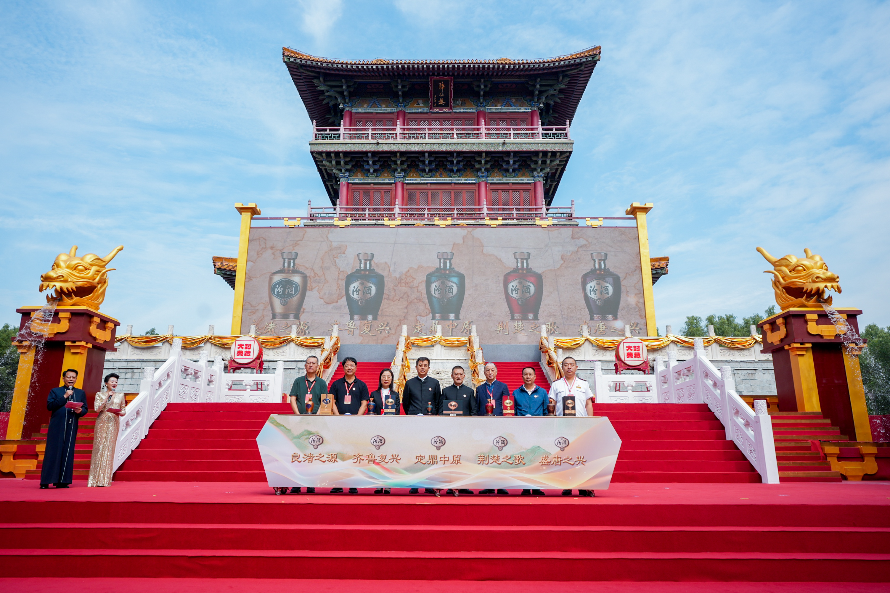 汾酒集团党委书记、董事长袁清茂,汾酒集团党委专职副书记、副董事长李振寰,汾酒集团党委委员、纪委书记、监察专员韩向宇,汾酒集团党委委员、副总经理、工会主席刘卫华,汾酒集团党委委员、副总经理梁建文,汾酒集团外部董事王锁奎,汾酒股份副总经理、总会计师王怀,汾酒股份副总经理、汾酒营销中心主任,汾酒销售公司党委书记、执行董事、总经理张永踊,公司助理级以上高管,以及来自全国各地的媒体记者、核心经销商代表、战略合作伙伴与汾酒生产一线员工代表参加大典仪式。
